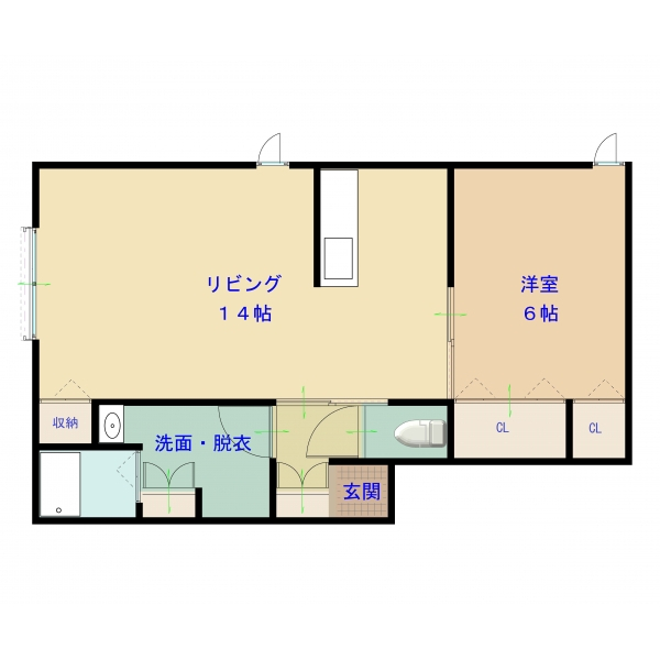間取り:1LDK(居室6畳、LDK14畳)